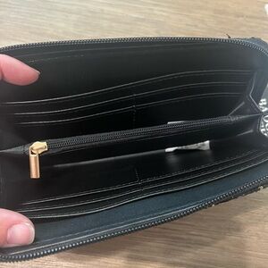 Badgley Mischka Tara Tweed Wallet Zip Around Black and Gold Fleck NWT