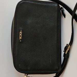 TUMI Black Leather Crossbody Bag Detachable Strap