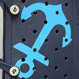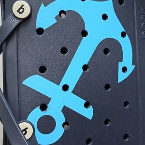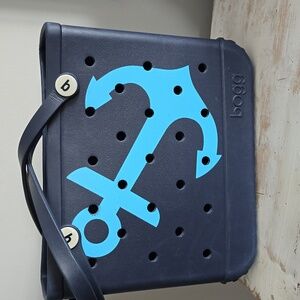 Baby (Medium) Bogg Bag Navy With Anchor. Adorable bag with a lot of life left but has signs of wear as seen in pictures. Perfect for the beach, boat, or outdoor activities!