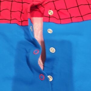 Dress your little hero in this vibrant red and blue spider-themed costume. Perfect for imaginative play and costume parties. 5 snaps in back and snaps to be able to change diaper if needed.