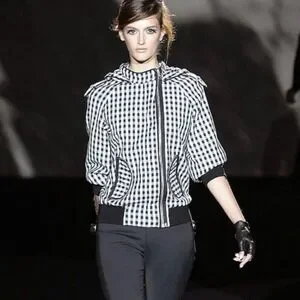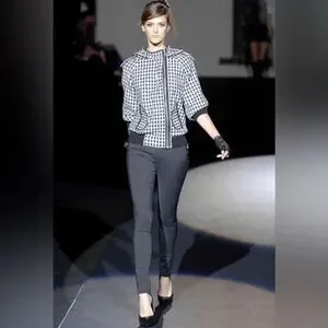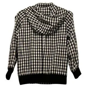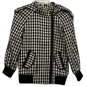 Asymmetrical gingham check plaid bomber hoodie from Gwen Stefani’s Y2K clothing line L.A.M.B. Rare piece featured on the runway in the L.A.M.B. Spring 2008 Ready-to-Wear Collection. Photo featured on Vogue.
