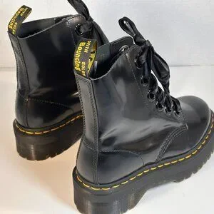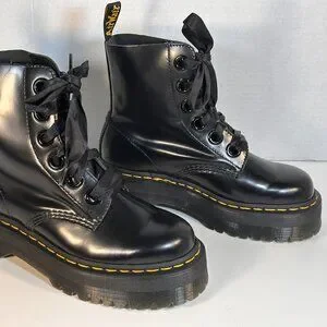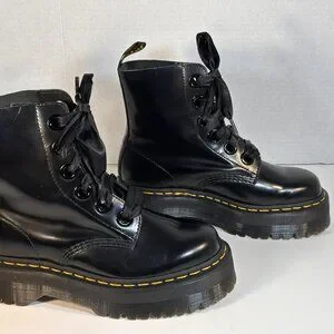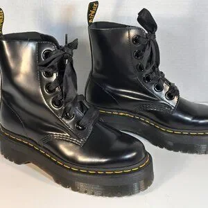 Black Smooth leather, Dr Martens Molly Edition of Combat Boots, no slip platform heel and sole