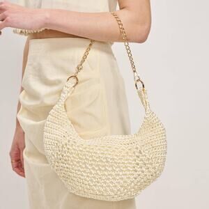 Soft Woven Soraya Chain Strap Shoulder Bag Ivory