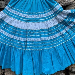 Vintage Vibrant Blue Full-Circle Retro Glam Square Dance Gypsy Midi Skirt