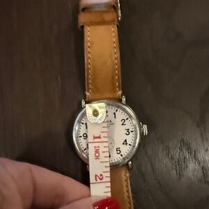 Shinola large face tan Leather Strap Watch with Silver Case