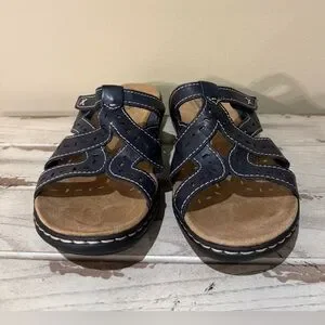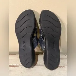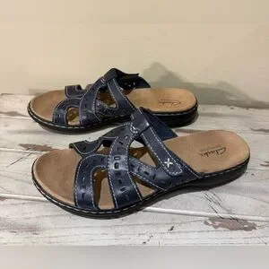 Clarks Brown Leather Laser Cut Comfort Sandals Size 9.5 EUC Walking Fashion