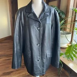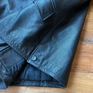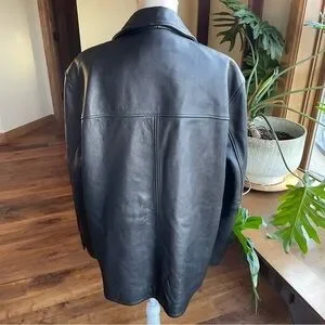 Vintage London Fog black leather jacket. Very nice vintage leather car coat. Originally a men's jacket but would look great on anyone. Heavy rugged leather with quilted lining. Very substantial and warm. Great vintage condition with minimal signs of wear. Measurements are included in photos to assist with fit. PLEASE NOTE: final photo is for fashion inspiration and is NOT the actual item.