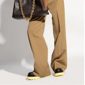 Round toe. Elasticized gusset at sides. Buffed calfskin pull-loop at heel collar. Rubber platform midsole in yellow. Treaded rubber outsole in brown.