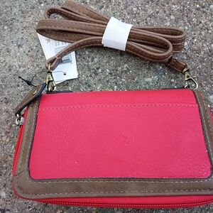 Stylish and functional cell phone wallet case in vibrant red. Perfect for keeping your phone and essentials organized on the go.