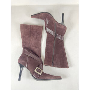 Y2K Brown Suede Leather Boots Guess By Marciano 10 Pointy Toe Sexy Stiletto