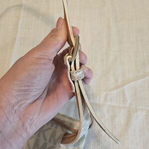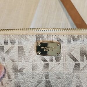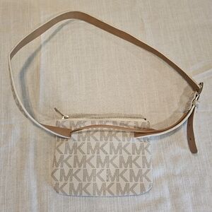 Stylish cream belt bag with iconic MK monogram. Perfect for on-the-go elegance. It can be used as a crossbag, like new condition, very small pink stain on the inside barely noticeable. Beautiful and very practical bag!!!