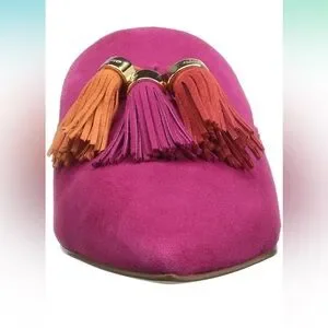 Step out in style with these chic fuchsia tassel mules. Perfect for adding a pop of color to any outfit.