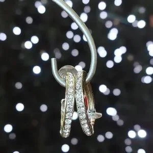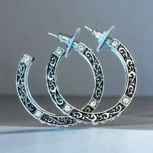 Elegant Black and Gold Tone Rhinestone Hoop Earrings.