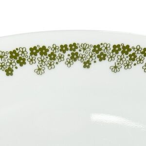 Vintage Corelle Spring Blossom (also know as Crazy Daisy) Green 12β Oval Serving Platter. Spring Blossom Green, widely known among collectors as "Crazy Daisy", is an iconic Corelle design originally produced by Corelle from 1972 to 1981. This serving platter is made from Vitrelle glass, a unique triple-layer glass technology known for its extra strength, durability, and resistance to chipping and breaking. The platter is lightweight, stackable, and safe for use in dishwashers, microwaves, freezers, and pre-heated ovens up to 350Β° F. Corelle dishes, including this pattern, are proudly made in Corning, NY, USA.