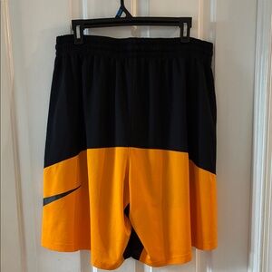 Dynamic Nike shorts in Black and gold colors, Features iconic swoosh logo from the front to the back on the left-hand side, super nice!