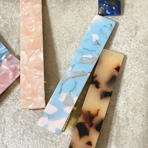 Made of high-quality acrylic resin, these alligator hair clips are strong, durable, and easy to use, the hair clips have a very elegant and eye-catching appearance, making any outfit pop! 18 are pictured, the orange one in the second photo is the 19th.
