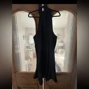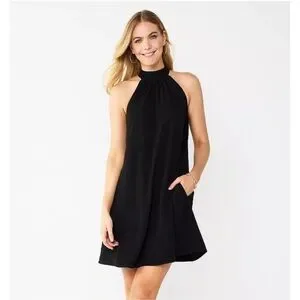 This elegant black halter dress is perfect for any occasion. Its sleek design and comfortable fit make it a must-have in your wardrobe.