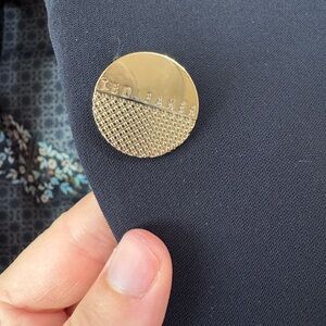 Elegant navy blue jacket with floral patterned lining. Ideal for versatile styling.