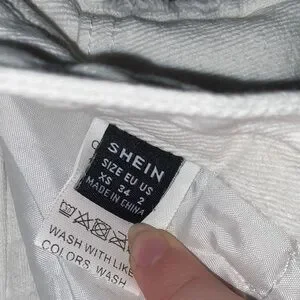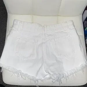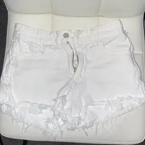 Chic white jean shorts with frayed edges. Ideal for casual wear.