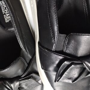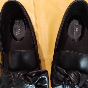 Elegant black loafers with a stylish bow. Crafted by Michael Kors. Perfect for casual elegance.