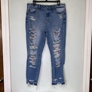 Kancan Distressed Skinny Jeans Raw Hem High Rise 100% Cotton Sz 30