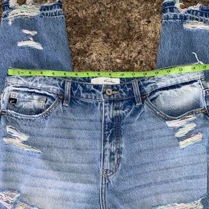 Kancan Distressed Skinny Jeans Raw Hem High Rise. Women’s Size 30. Great pre-owned condition! Pastel multi-colored threads accents. Material: 100% Cotton. Measurements: Front rise 11,” Waist lying flat 16.5,” Inseam 26.”