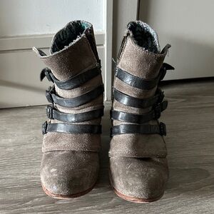 Freebird by Steven Taupe Ankle Boots with Black Straps