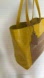 RoviMoss yellow and beige leather Misc Tote Bag with detachable interior beige wallet. Unlined. Double straps and leather hang tag with RoviMoss branding. Wallet attaches to tote bag with snaps and has a zipper pocket. Includes branded dust bag. Style RMSP14062.