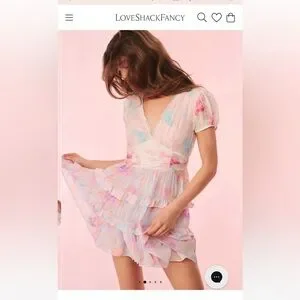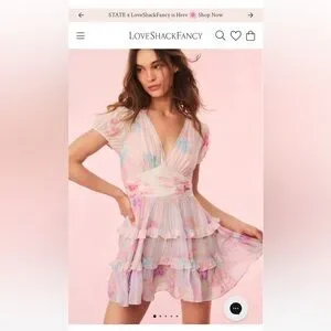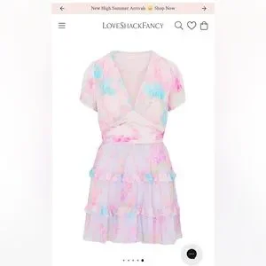 Delicate chiffon mini dress with pastel floral print. Features layered ruffles and a playful silhouette. Perfect for summer date nights💕