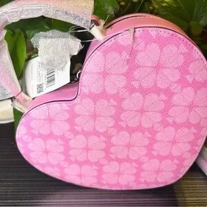 New with tags and in packaging Kate spade heart shaped hand bag with crossbody strap. No callouts.