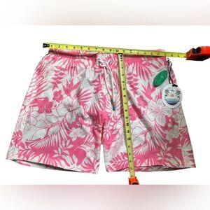 FREE PLANET eco friendly hybiscus pattern pink white swim trunks shorts NWT