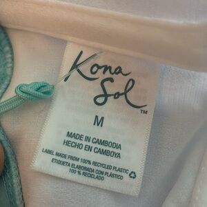 Kona Sol One piece Swimsuit Blue/green Color with White Shell print Has adjustable straps with ruffle detail Built in shelf bra with light padding Size Medium (8-10) Super cute! New with Tags! Fast same day/next day shipping!