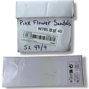 New in box! Pink Flower Sandals Slide Clear transparent Strap Block Heels Women's Sz 40/9