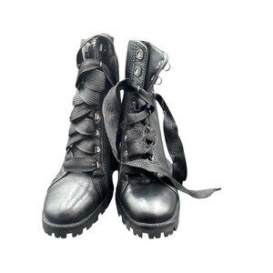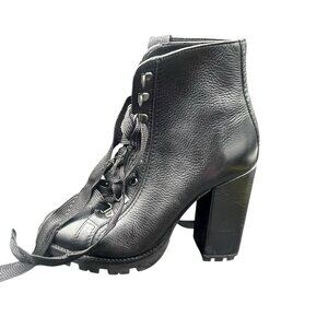 Schutz Zhara Lug Sole Boots Women’s 8.5 B Leather Black Lace Up Heeled