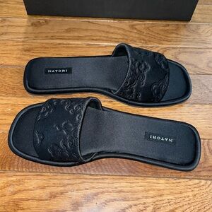 NEW Natori Radial Slide Sandals All Black Textured Strap Women's Size 8