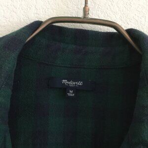 Madewell Womens-M Flannel Cargo Workshirt Plaid Button Down Shirt Blue/Green