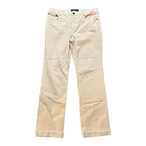 Elegant cream corduroy pants by Lauren Ralph Lauren. Perfect for a chic look.