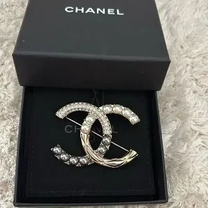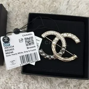 Pearl Crystal Bright Young Thing CC Brooch Gold