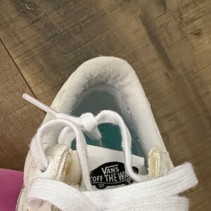 Classic Vans sneakers with a cream checkered pattern. Stylish and comfortable for everyday wear.