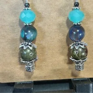 Handcrafted dragon blood stone cat eye glass crystal earrings