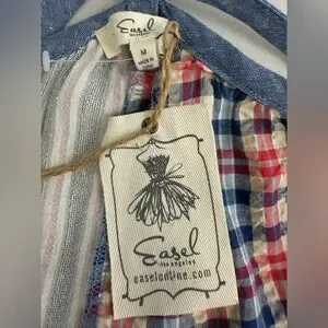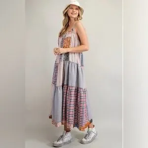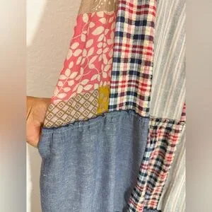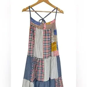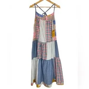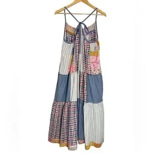 NWT Easel Boho Patchwork Maxi Dress Size M Linen Cotton Adjustable Festivals