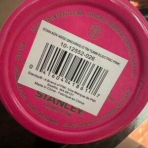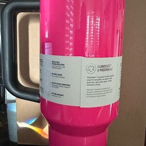 Vibrant pink travel mug by Stanley. Includes a convenient straw and sturdy handle. Sold Out in Stores. No marks or damage