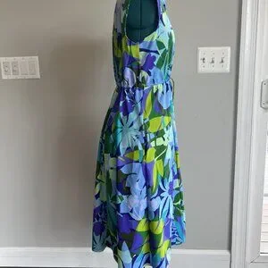 This stylish dress features a vibrant Kaleidoscope Floral Iris pattern, perfect for making a statement.
