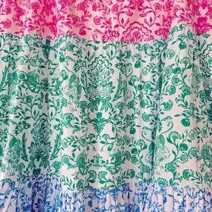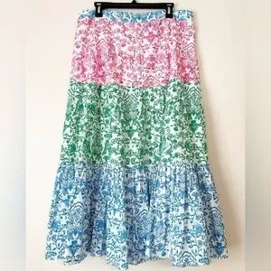 Colorful, preppy, tiered cotton midi skirt in a medium in like new condition. Measurements taken flat