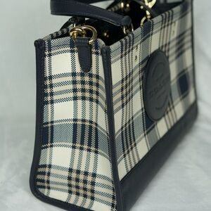 Absolutely love this bag — only used a couple times and it’s in pristine condition. Classic navy and cream plaid with premium leather accents. Comes with a detachable longer strap for crossbody wear. Interior is super clean and well taken care of. Basically brand new. Timeless and versatile — perfect for any season!