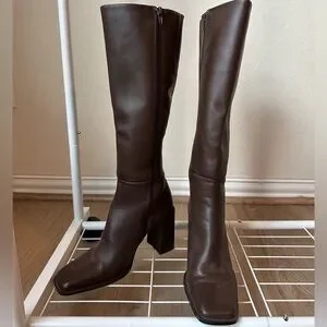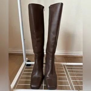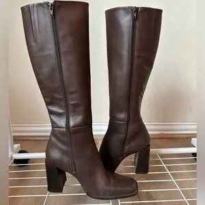 Step out in style with these elegant brown knee-high leather boots. Perfect for any occasion, these boots offer both comfort and sophistication.