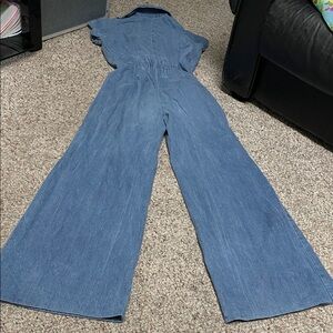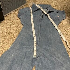 Vintage 70s one pc ultra bell bottom Denim zip front Jumpsuit