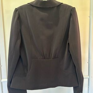 Sophisticated black blazer with a tailored fit. Ideal for office or evening wear. Features classic lapels and button closure. EUC.