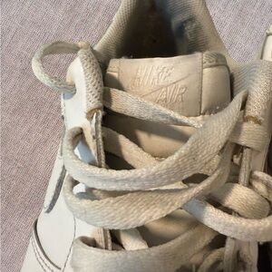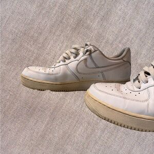 These shoes are definitely used. But there is a lot of life left in them. They are vintage Nike Air Force ones. All white. I tried to take a picture of every angle so you have an idea of their condition.