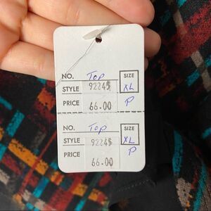 NWT black multicolour 3/4 sleeve top shirt casual blouse. Soft light material. Casual summer or business casual style. Soft works brand tag states size XLrg. Slight stretch. (Pictured on model same style but different size)